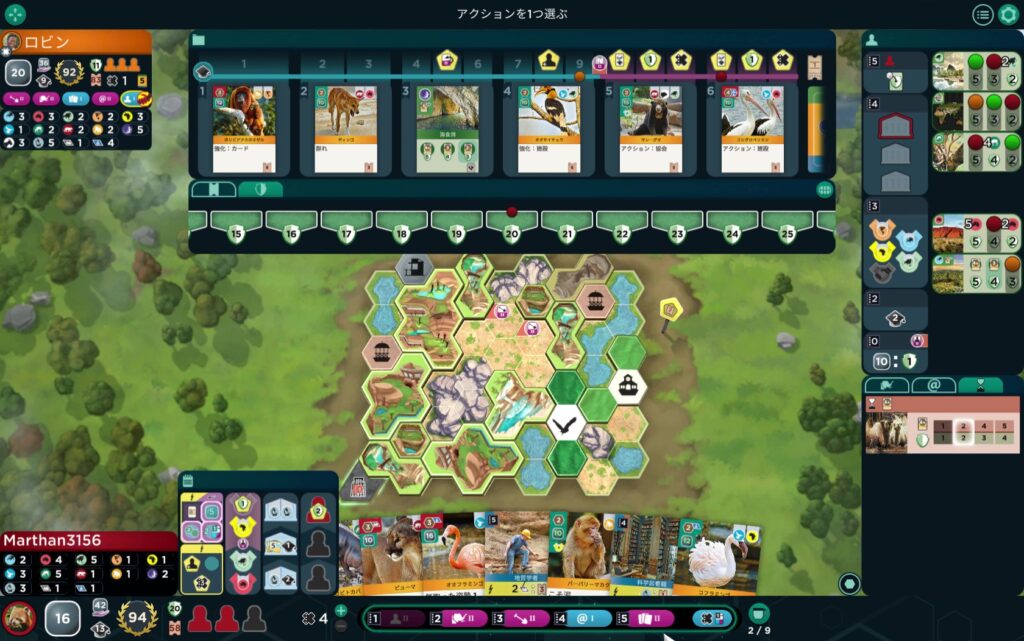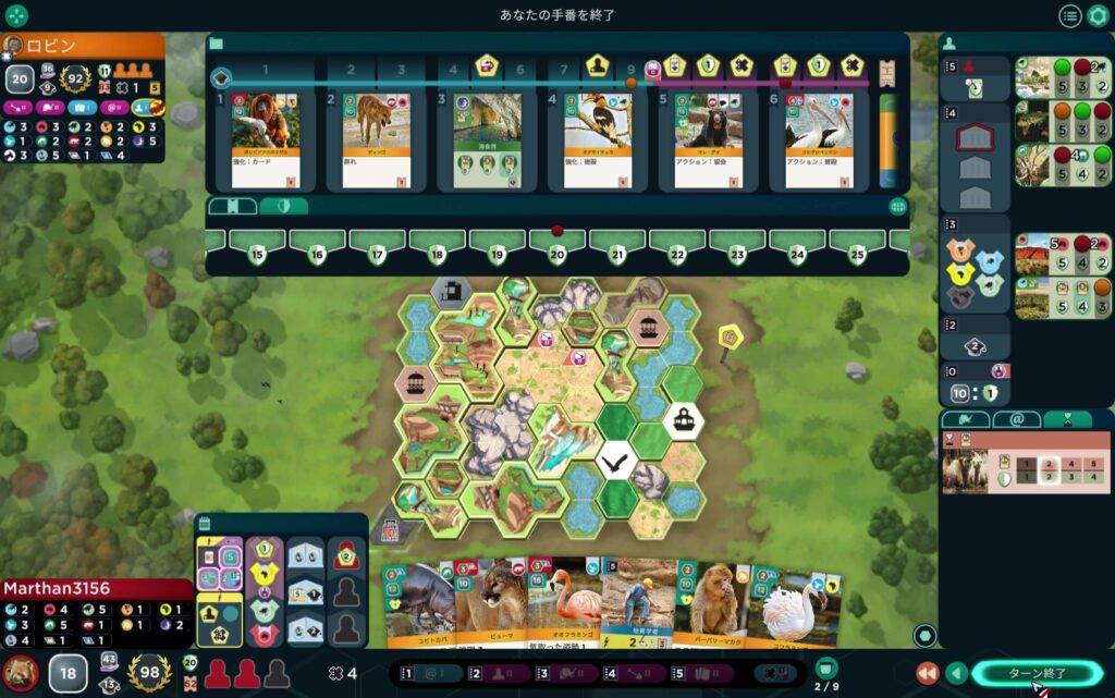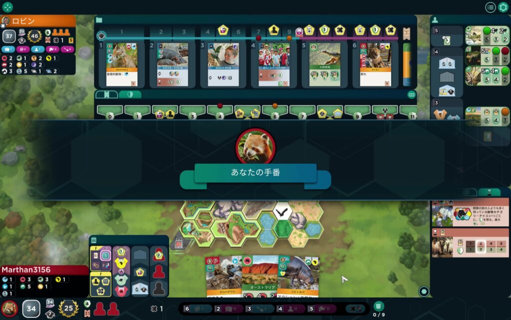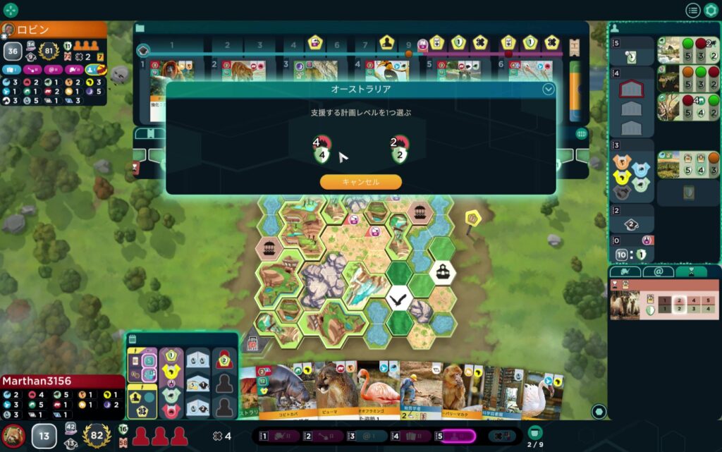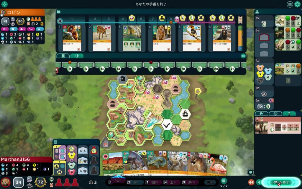 前半に草食動物をまとまって手に入れられたことと、途中で保全計画(オーストラリア)を引けたのがポイントだったのではないかと思います。