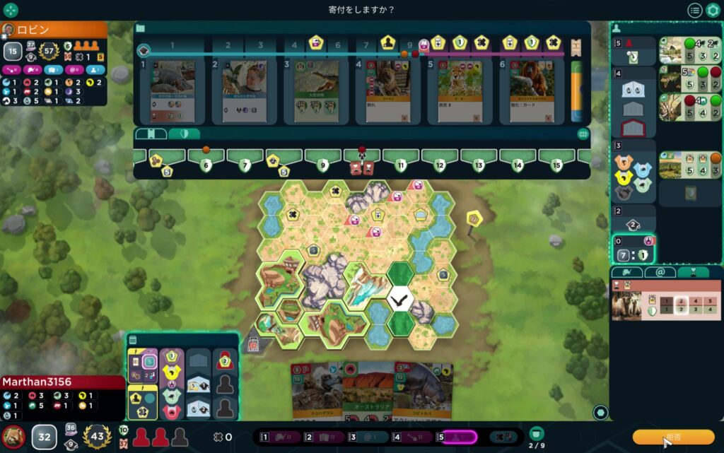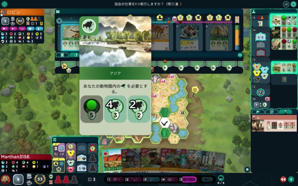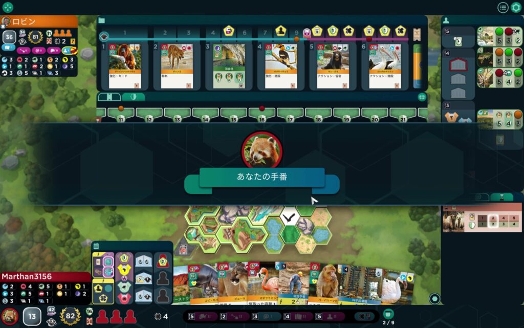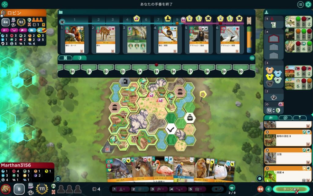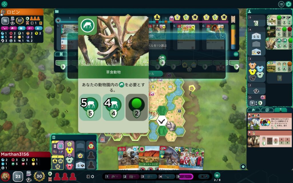 前半に草食動物をまとまって手に入れられたことと、途中で保全計画(オーストラリア)を引けたのがポイントだったのではないかと思います。