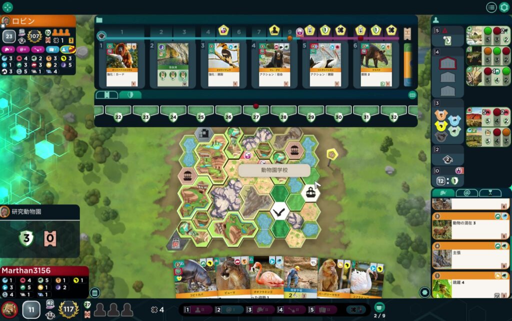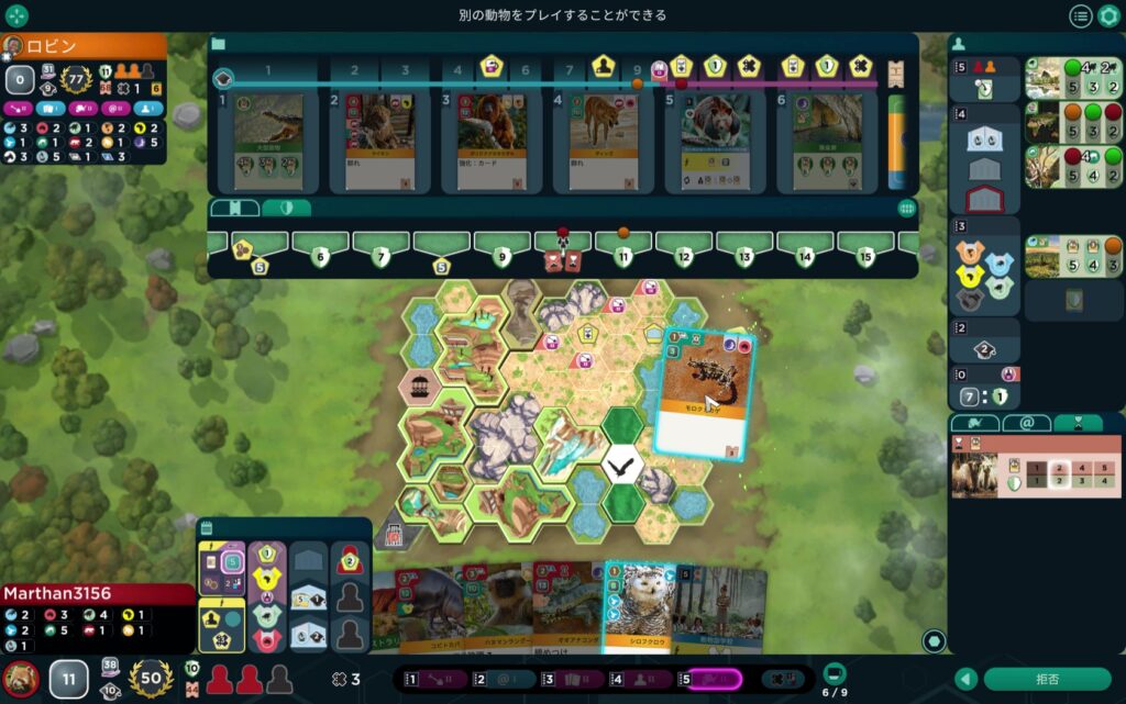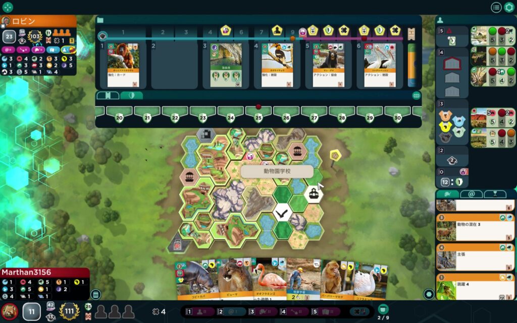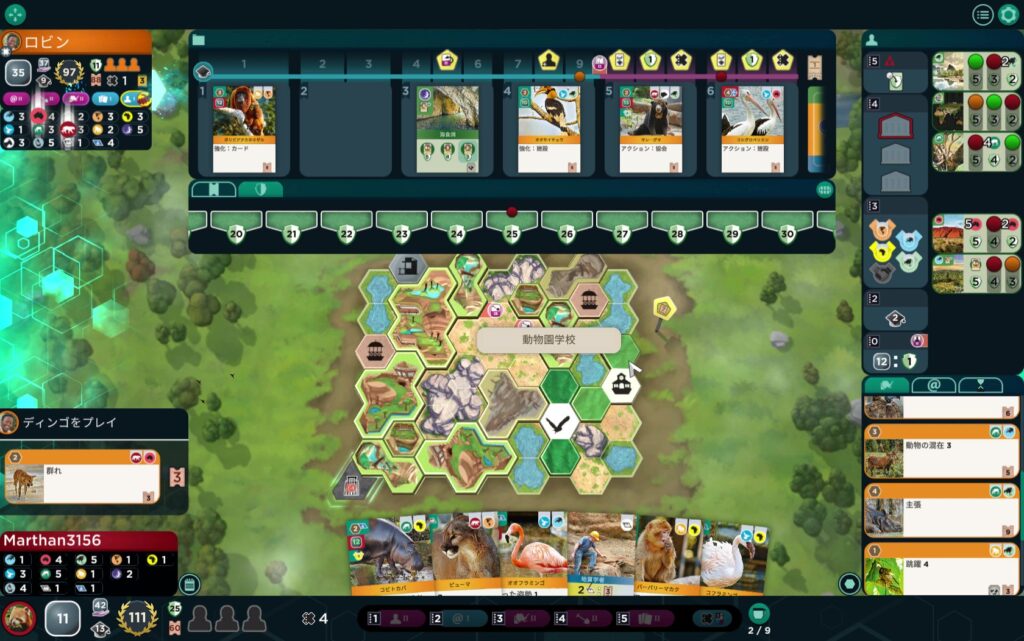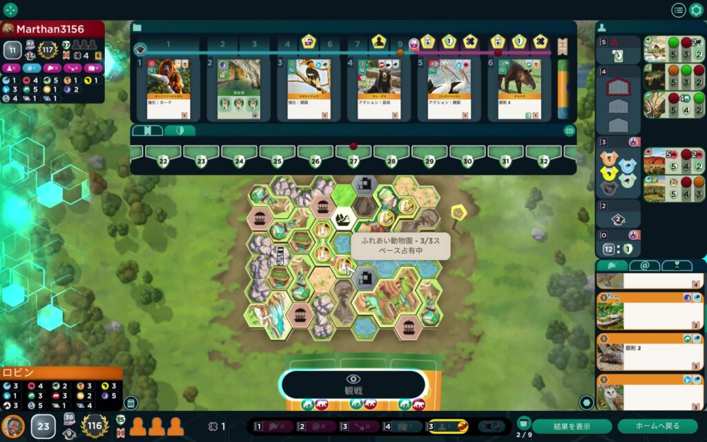 相手プレイヤーの動物園はこんな感じでした(ゲーム中も見ることができます)。