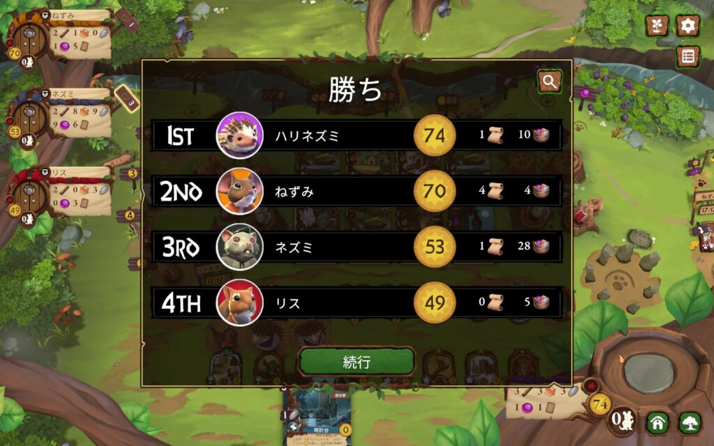 宿屋の主人→2点の動物カードの場合は同点になります。