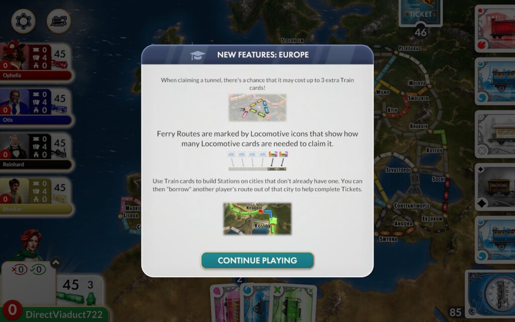 例えば、オリジナル版(アメリカ)ではLos AngelesからSalt Lake Cityまでの区間に列車を通されてしまうと、途中のLas Vegasに行けなくなり、Las Vegas発着の乗車券が達成できなくなりましたが、Los AngelesやSalt Lake Cityに駅を建てることでLas Vegasまで到達した扱いになります。