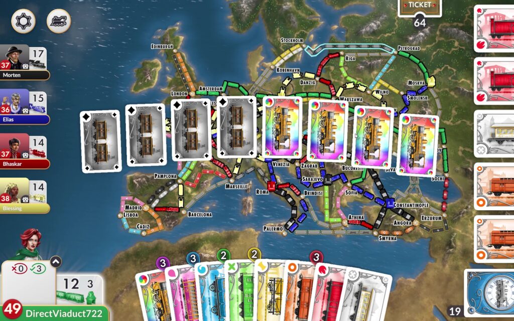 このため、長距離区間であるPalermo-SmyrnaやBudapest-kyiv(コスト6)、Stockholm-Petrograd(コスト8)に列車を置けるかどうかが勝負のポイントになりそうです。特にStockholm-Petrograd間に列車を置くと21点手に入るので、機会があったら狙いたいところです。