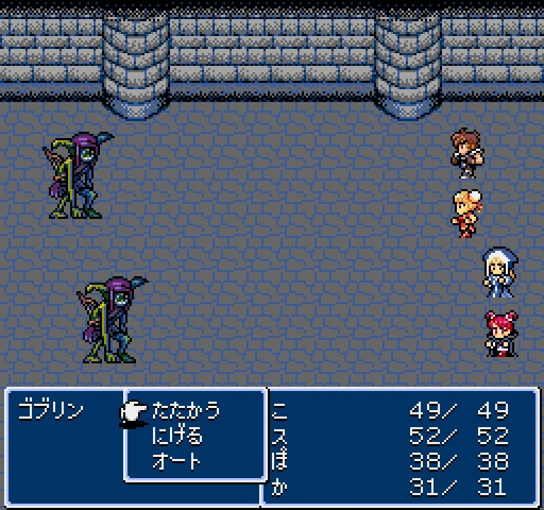 戦闘画面。床の背景も描かれて、FF5に近い見た目に。